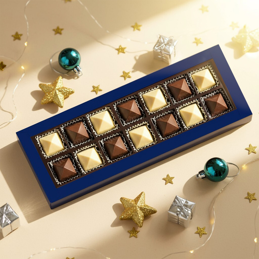 Состав: шоколадные массы – сахар, масло какао, молоко цельное сухое, сухое обезжиренное молоко, пахта сухая, какао тертое, какао-порошок, сыворотка молочная сухая, молочный жир, паста ореховая из ядер фундука, эмульгатор (соевый лецитин,Е476), соль, натуральная ваниль, ароматизаторы; начинки – сахар, патока, какао-масло, какао тертое, молоко сгущенное (молоко цельное, сахар (сахароза, лактоза)), масла растительные рафинированные дезодорированные (подсолнечное, рапсовое, оливковое; масло сладко-сливочное, молоко сухое обезжиренное), жир специального назначения (масло ши, рапсовое масло, соевое масло, антиокислитель( лимонная кислота)), молоко сухое цельное, молоко сухое обезжиренное, белый шоколад (сахар, масло какао, сухое обезжиренное молоко, сухое цельное молоко, эмульгатор (лецитин соевый), экстракт ванили), стабилизатор (мальтодекстрин), коньяк (дистиллят коньячный, вода, сахар, пищевой краситель (сахарный колер)), консервант (сорбиновая кислота), регулятор кислотности (лимонная кислота), эмульгаторы (лецитин соевый, Е471), ароматизаторы.Продукция производится на предприятии, где используются арахис, кунжут, орехи, яичные и молочные продукты, злаки, содержащие глютен.