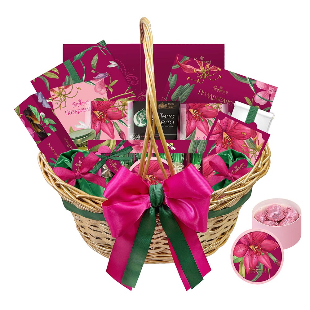 Шоколадные конфеты «Ассорти» со сливочными и кремовой начинками, с кремовой начинкой и декором, конфеты «Желейные» в горьком шоколаде с декором (вишневые, яблочные), мармелад желейный «Апельсиновый» с декором/ 360г