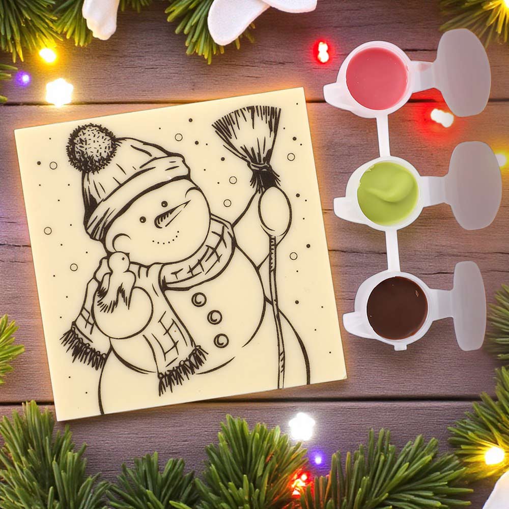 Праздничное лакомство для всей семьи – уникальная шоколадная раскраска «Снеговик», которая превратит чаепитие в настоящее творчество. Подарите себе и детям незабываемые моменты радости и волшебства!