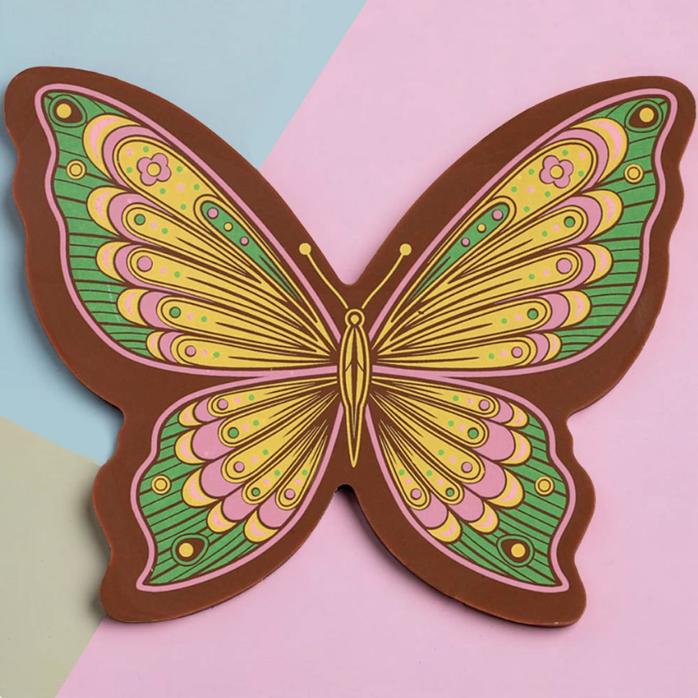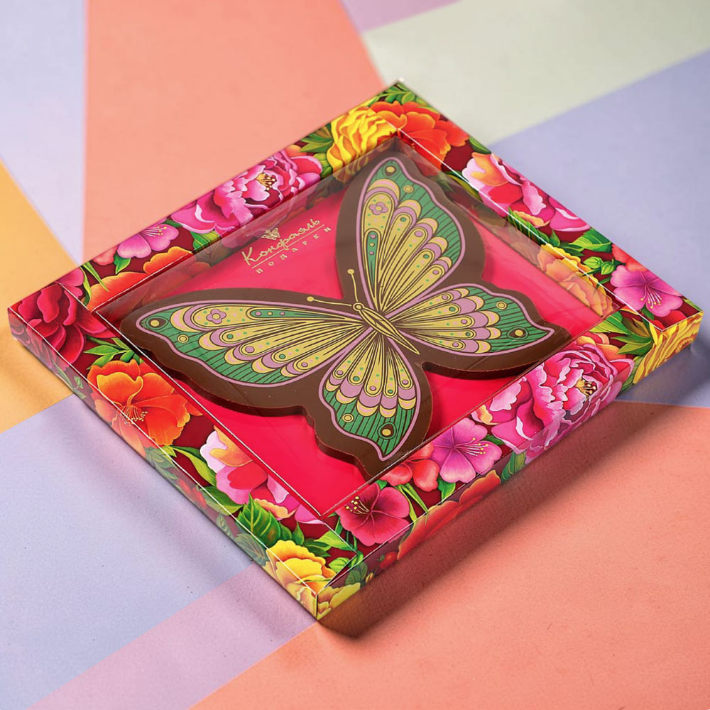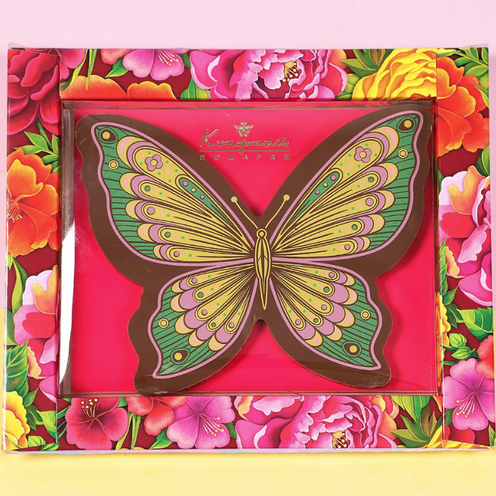 Открытка с молочным шоколадом в форме бабочки — это нежный и универсальный подарок, который подойдёт по любому поводу: