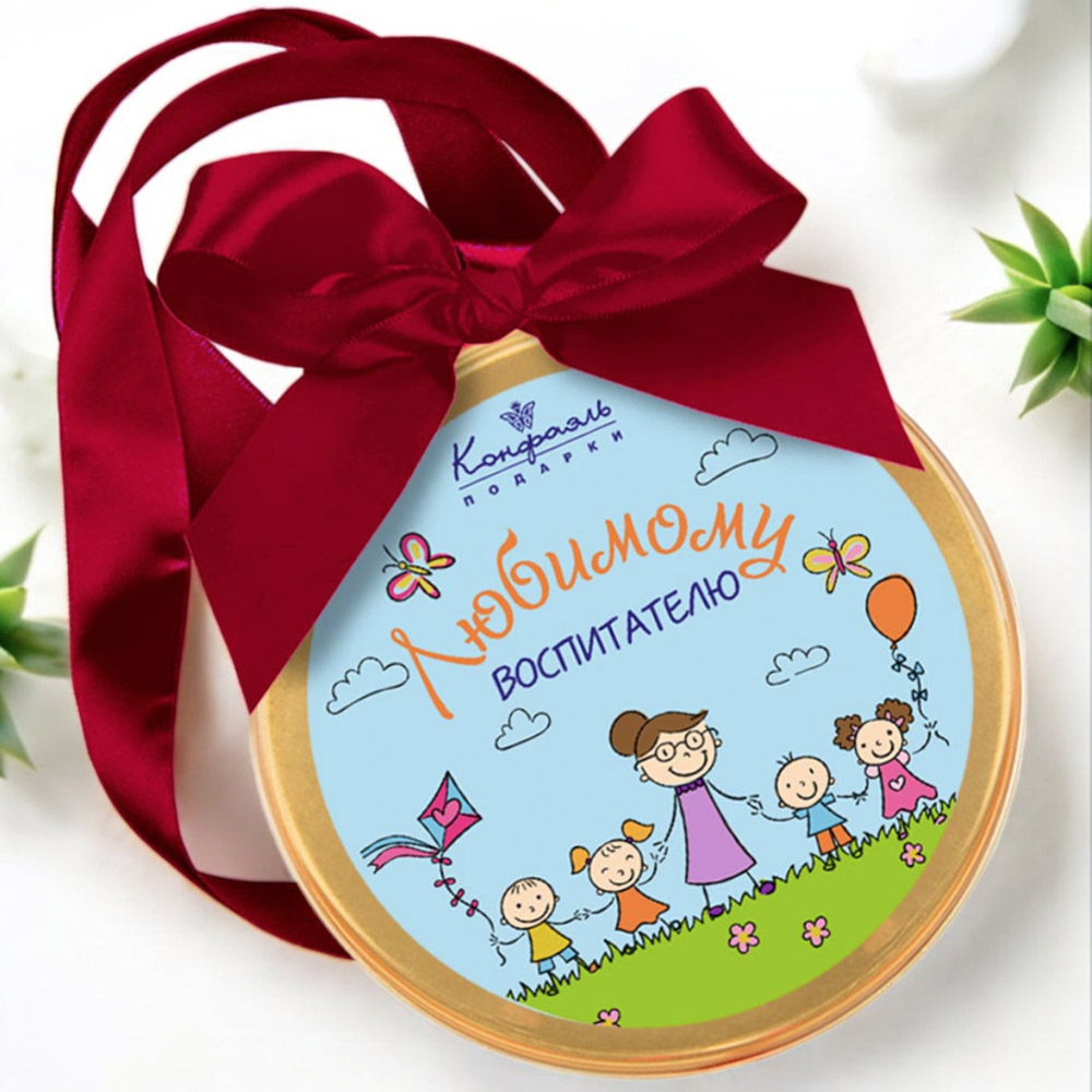 Кондитеры компании «Конфаэль» специально для такого случая изготовили из натурального шоколада эксклюзивную медаль «Любимому воспитателю».
