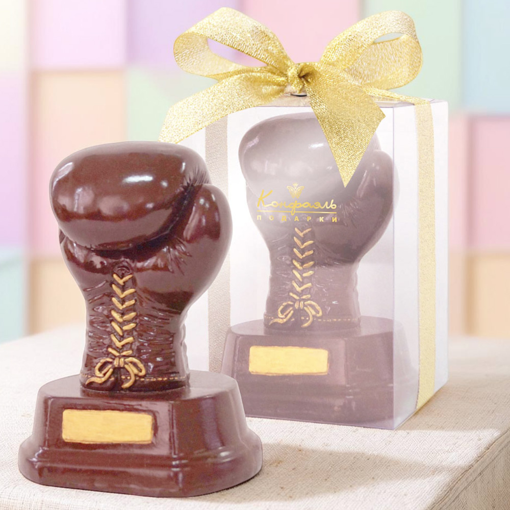 Боксёрскую перчатку, умело выполненную из молочного шоколада, можно смело назвать штучной работой.