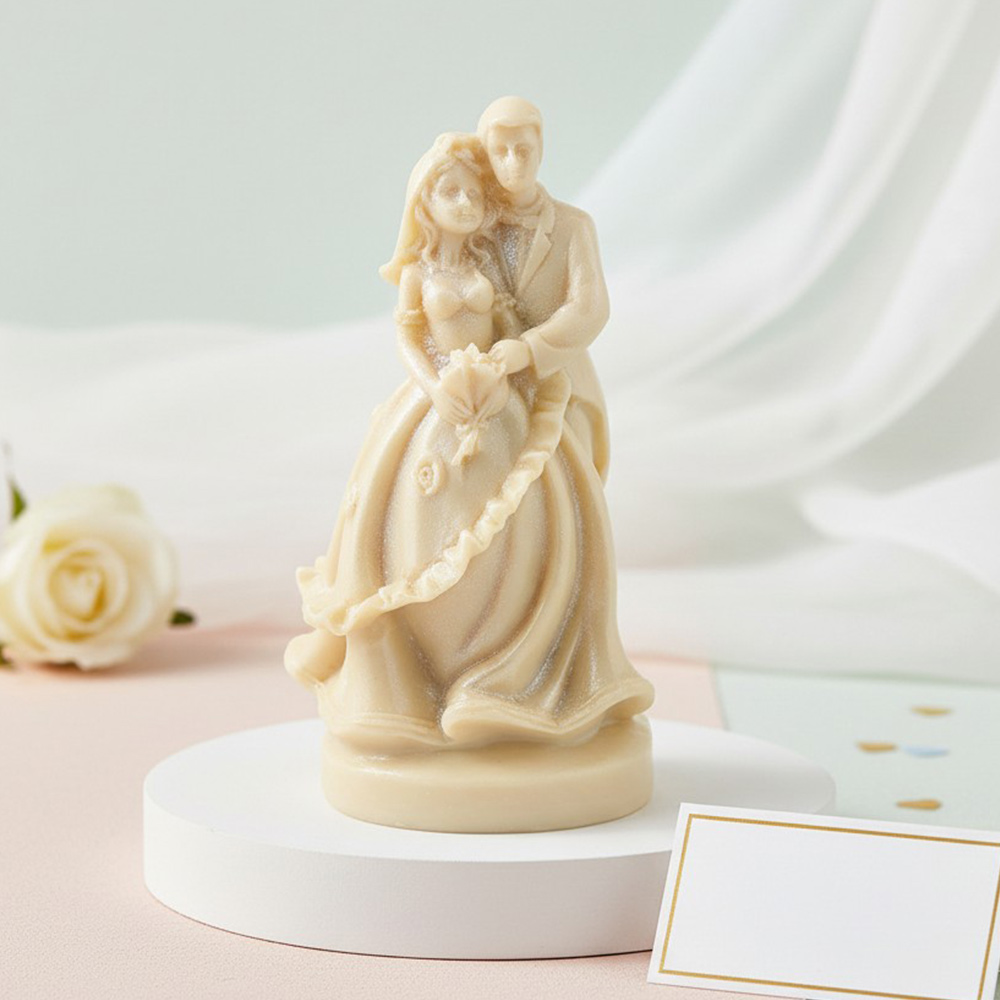 Их запечатленные в белом шоколаде образы вы можете как преподнести в виде подарка на праздник, так и сделать частью торжества, украсив стол брачующихся.