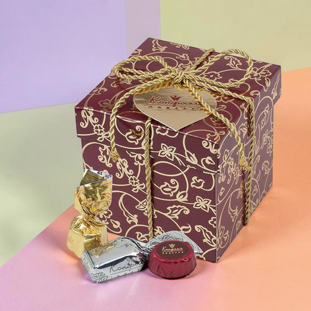 шоколадные массы – какао тертое, сахар, какао-масло, молоко сухое цельное, эмульгатор (лецитин соевый), ароматизатор («Ванилин»); начинки – сахар, патока, молоко сгущенное (молоко цельное, сахар, (сахароза, лактоза), сливки сгущенные с сахаром (сливки нормализованные, сахар (сахароза), лактоза), молоко сухое цельное, молоко сухое обезжиренное, какао-масло, какао тертое, рафинированные, дезодорированные, растительные масла, стабилизатор (мальтодекстрин), абрикосы сушеные, чернослив, ядра орехов миндаля, ядра орехов фундука, ананас сушеный, папайя сушеная, яичный белок, лактоза, желирующий агент (агар), коньяк (дистиллят коньячный, вода, сахар, натуральный пищевой краситель «карамельный колер»), спирт этиловый ректификованный, регулятор кислотности (лимонная кислота), консервант (сорбиновая кислота), эмульгаторы (лецитин соевый, Е471 ), ароматизаторы («Бейлиз», «Карамель», «Бренди», «Апельсин»), натуральный пищевой краситель «Карамельный колер»