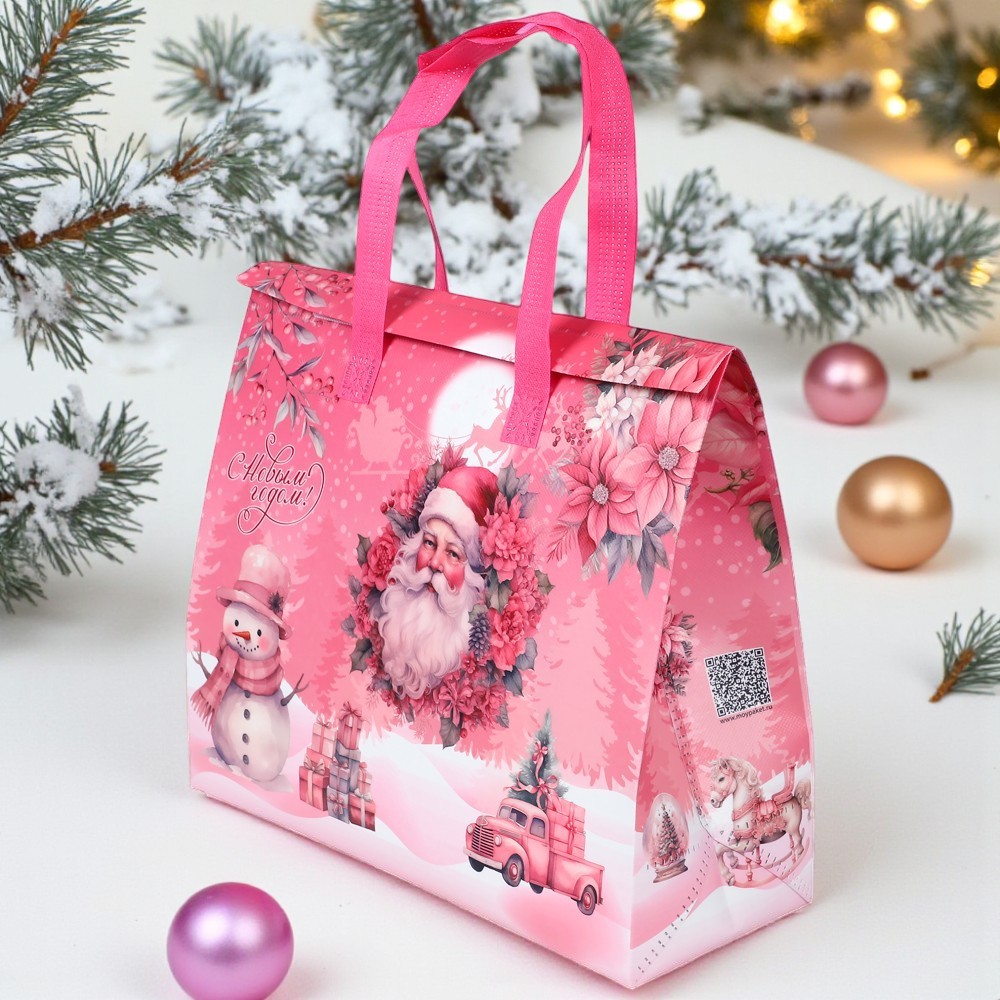 Термопакет розовый "С Новым годом" 35х30х13 см (застежка липучка многоразовая)