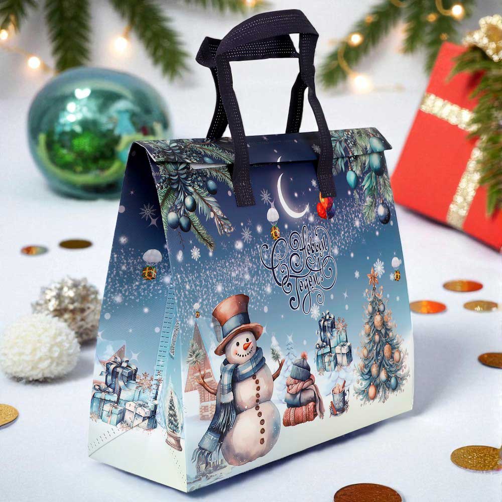 Термопакет синий "С Новым годом" 35х30х13 см (застежка липучка многоразовая)