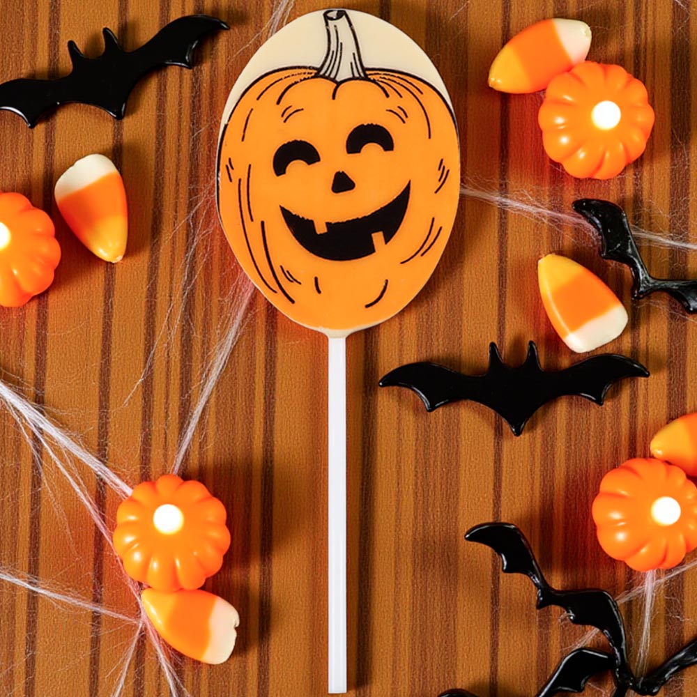 Угощение или жизнь? Так обычно выпрашивают сладости на Хэллоуин Конечно же угощение! Этот очаровательный леденец из белого шоколада обязательно понравится Вашему ребенку! Скоротайте осенний вечер за поеданием сладостей от Конфаэль!