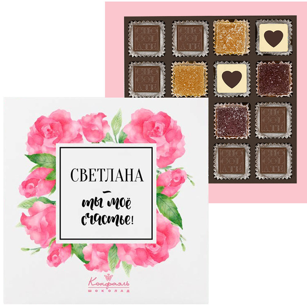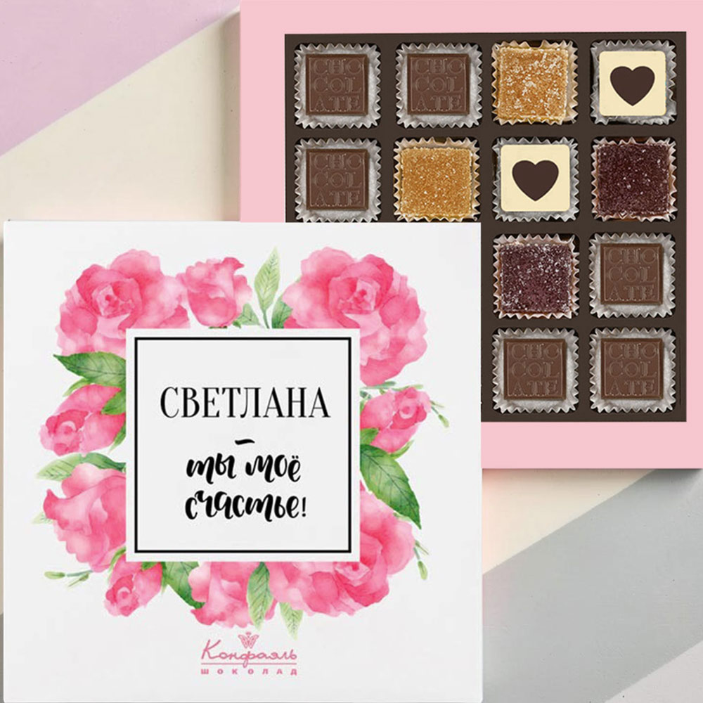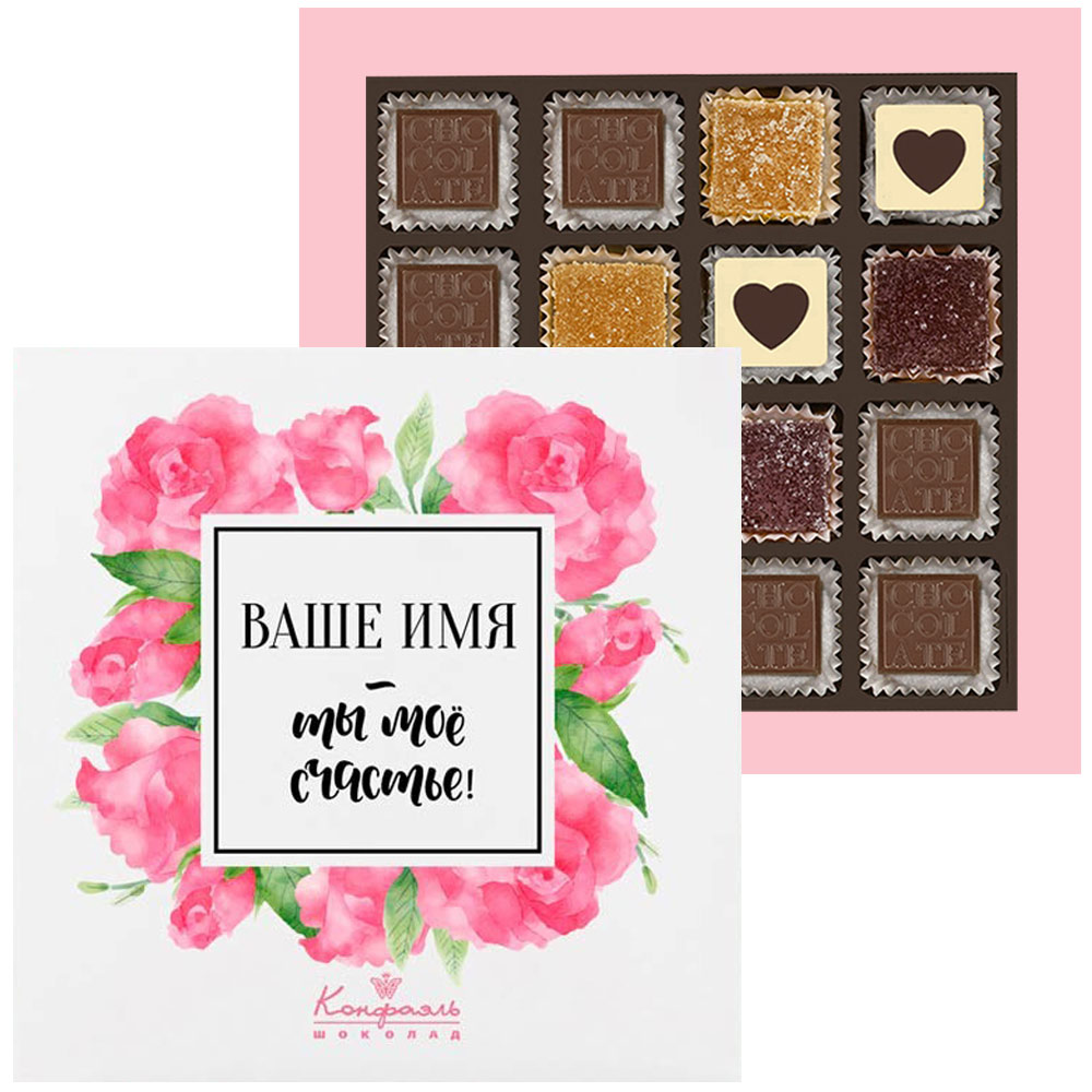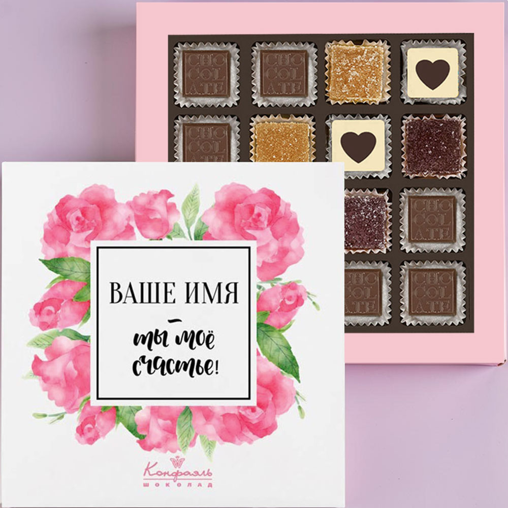 2. Выберите имя, которое вы хотите разместить на коробке, и отправьте эту информацию на электронный адрес : podarok@confaelshop.ru.