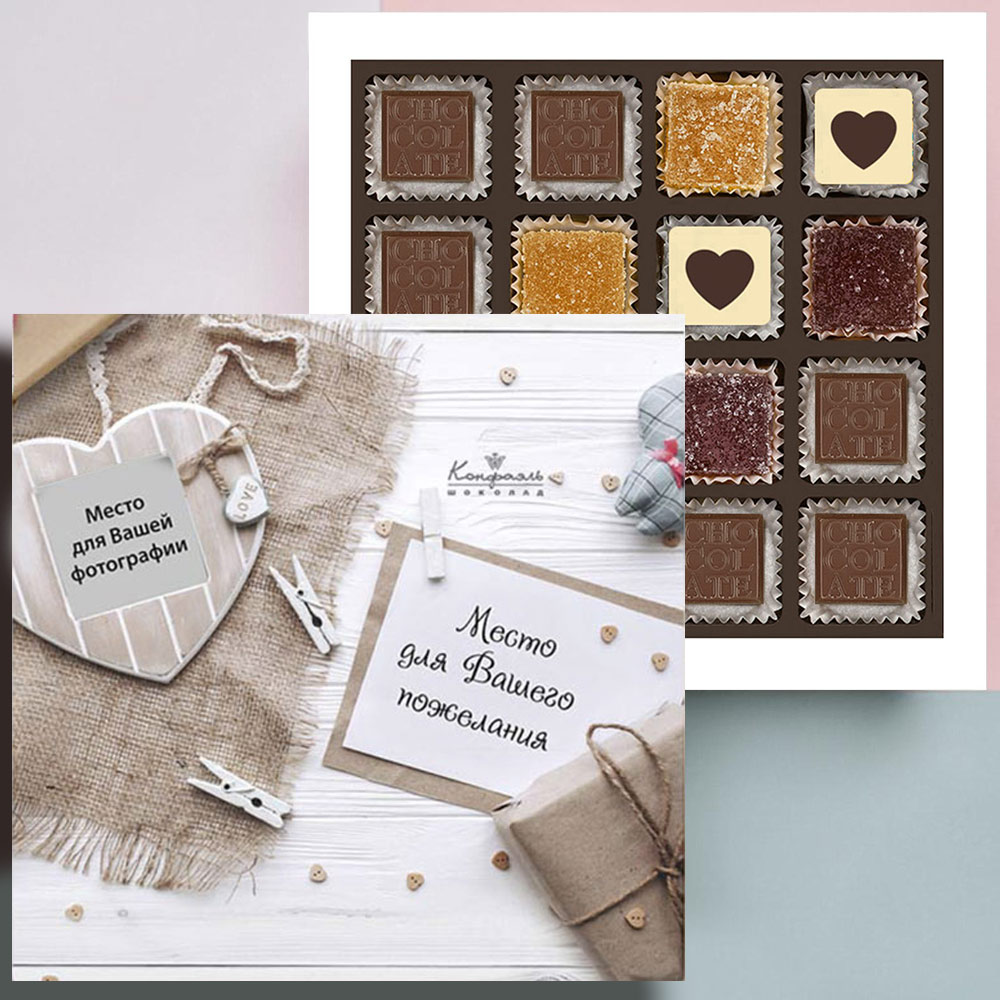 2. Выберите фото и пожелание, которые вы хотите разместить на коробке, и отправьте эту информацию на электронный адрес podarok@confaelshop.ru.