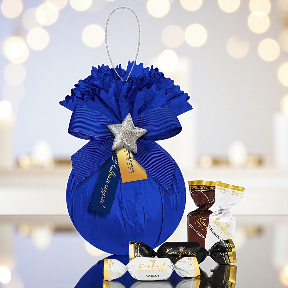 Ёлочный шарик с конфетами: суфле, сухофрукты в горьком шоколаде 120г