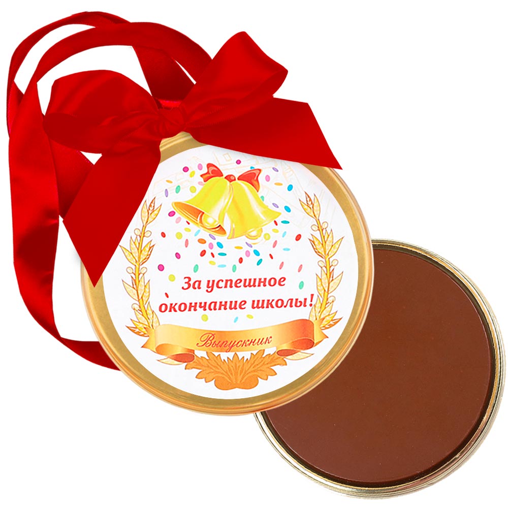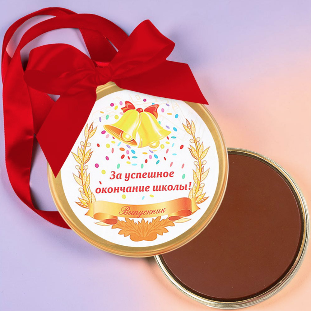 Сверкающая медаль "За успешное окончание школы", изготовленная из шоколада, подчеркнёт важность события и подсластит горечь расставания с прошлым.