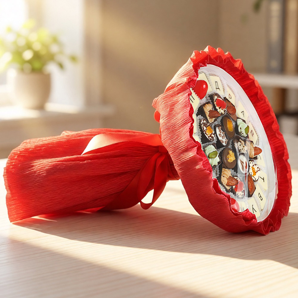 Конфеты буквы -"Ассорти" в белом шоколаде с ванильной начинкой