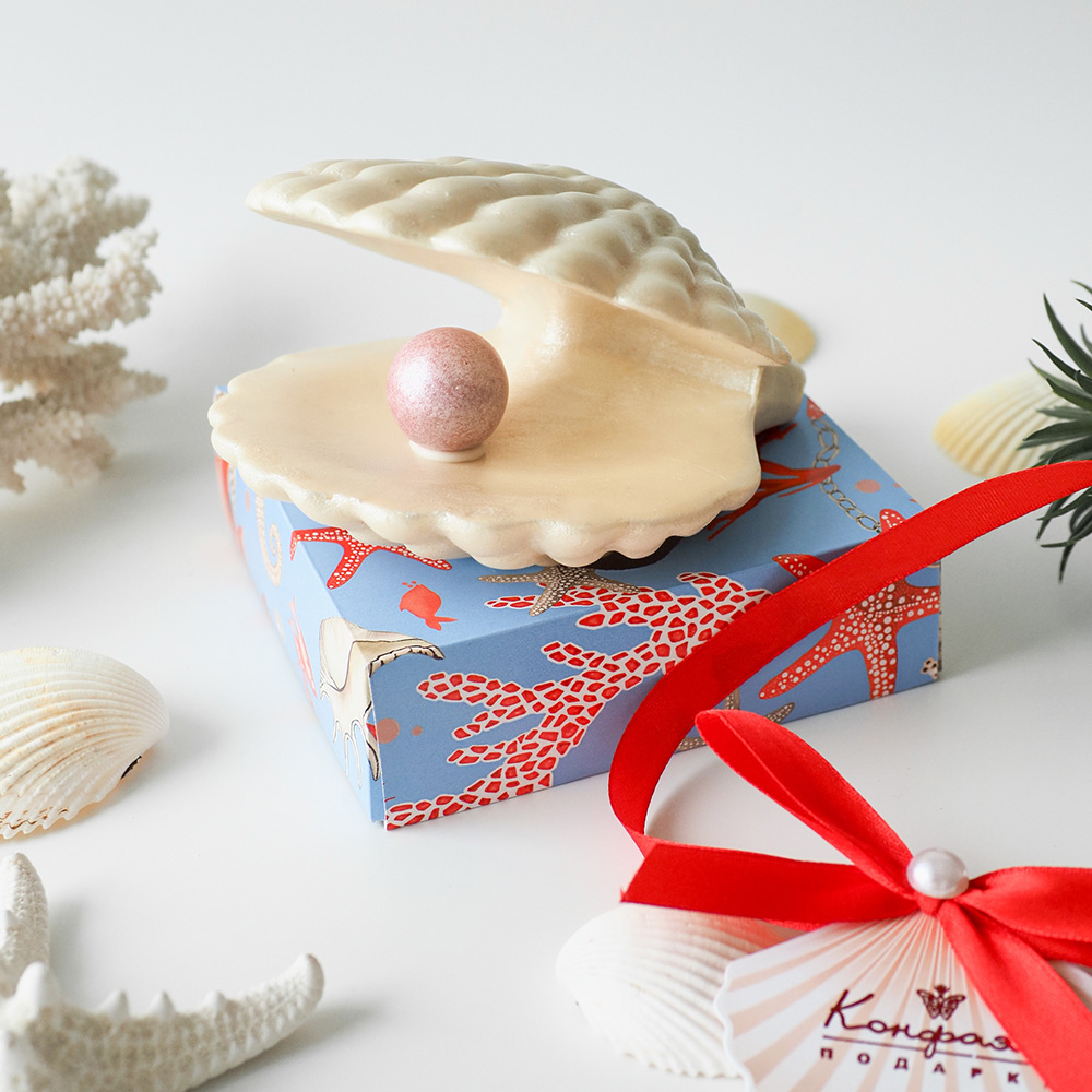 Все женщины без ума от драгоценностей и шоколада. Шоколадная жемчужина – это оригинальное воплощение женских пристрастий, отличный сувенир, которым можно сопроводить любое событие, будь то признание в любви или предложение руки и сердца. Сама ракушка сделана из вкуснейшего белого шоколада, а жемчужина – это фундук в шоколаде и глазури. Если не знаете, чем удивить любимую даму, шоколадная жемчужина с этой задачей справится на отлично.